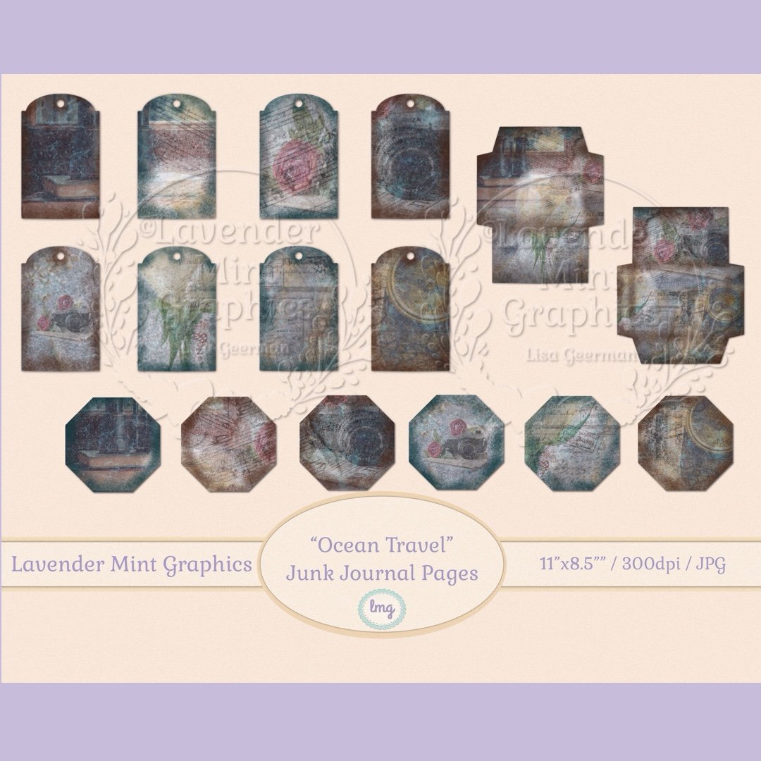 "Ocean Travel" is a small digital download kit. There are four unlined pages and four lined pages to write on. All are in landscape dimensions of 11" x 8.5". There are octagon-shaped tags, hang tags, and envelopes included. Tag sizes are approximate. Perfect for digital scrapbooking, junk journaling, making cards, invitations, etc.