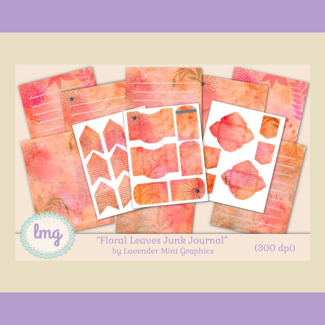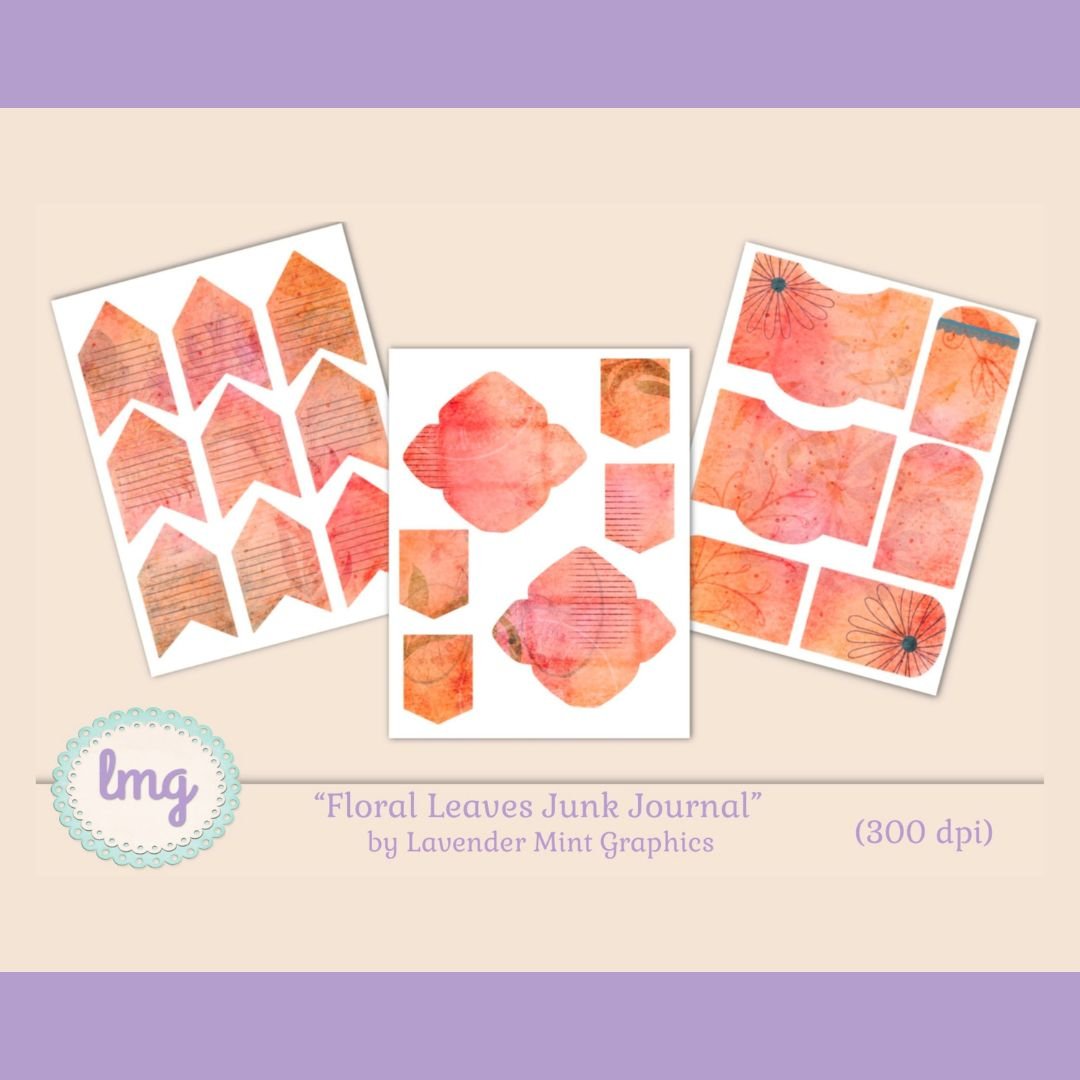 Floral Leaves digital journal pages have a bit of a shabby chic, vintage charm to them. They are perfect for your junk journal or scrapbook needs, cards, invitations, announcements, and other crafting projects. Papers are in .jpg format. Tags and envelopes are in both .jpg and .pdf formats.